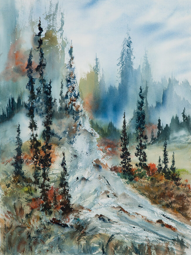 Paintings WATERCOLOURS Morning Roses The Cheam Range Mt. Revelstoke National Park – SOLD – Northern Sky Golden Ears Provincial Park Valley of the Ten Peaks Cormorant Conversation Pacific Shoreline – SOLD – Misty Morning Night Sky Near Whitehorse OILS Tangled Forest – SOLD – Aurora Borealis 2 – SOLD – Morning Forest – SOLD –